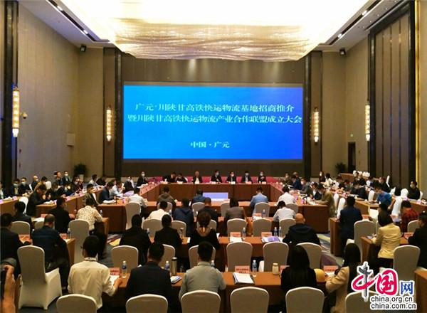 當日開工儀式后結束后,還舉行了廣元·川陜甘高鐵快運物流基地招商推介暨川陜甘高鐵快運物流產(chǎn)業(yè)合作聯(lián)盟成立大會。該聯(lián)盟由54家高鐵快運物流相關單位自發(fā)成立,將以高鐵快運物流基地為核心,搭建鐵路高鐵快運、生產(chǎn)制造、商貿(mào)流通、社會物流企業(yè)合作平臺,通過物流組織方式創(chuàng)新,實現(xiàn)供應鏈降本增效,讓各方收益;同時實現(xiàn)資源對接,優(yōu)勢互補,共同推動廣元高鐵快運物流基地高效建設運營,推動川陜甘地區(qū)物流業(yè)提檔升級,進一步支持區(qū)域生產(chǎn)制造和商貿(mào)流通高質(zhì)量發(fā)展。