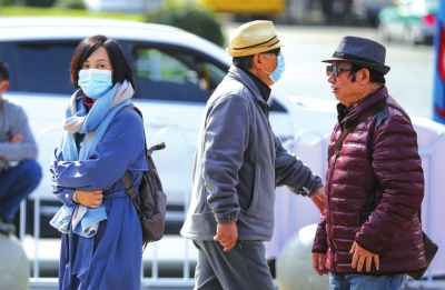 氣溫下降,市民換上厚衣服。 馬軍 攝