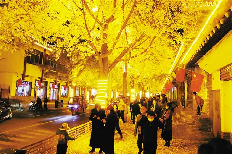 立冬前后,被稱(chēng)為“黃金大道”的天水市青年南北路銀杏一條街,黃葉飛舞一地金黃,迎來(lái)一年中最佳觀賞期。 天水市秦州區(qū)青年南北路全長(zhǎng)700余米,道路兩側(cè)種滿了銀杏樹(shù)。落葉季節(jié),每到夜幕降臨后,銀杏樹(shù)上的LED金黃色燈帶亮燈后,整條街黃葉黃燈交相輝映,璀璨奪目,成了市民近日遛彎首選的“打卡”地。