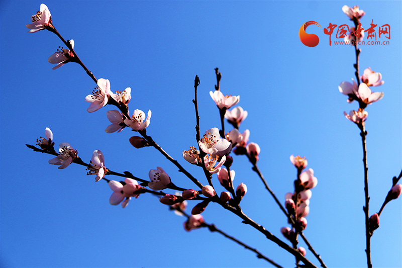 在五龍山,漫山桃花競相開放,香氣襲人,匯成了花的海洋,粉紅的桃花在春風里綻放,在春日的陽光下煞是好看,遠遠望去粉的嬌柔婀娜,層層疊疊,瓣瓣舒展。一列火車疾馳而過,滿眼的美景吸引過往游客駐足拍照留念,感受大自然給予這座小城的美好饋贈。