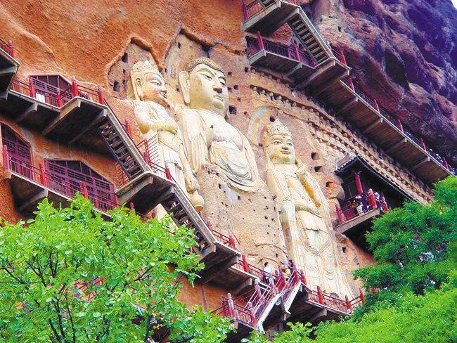 麥積山石窟與敦煌莫高窟同為四大石窟??胺Q5-18 世紀(jì)世界泥塑藝術(shù)史上的瑰寶,素有“東方雕塑陳列館”之稱。2014年作為中哈吉三國(guó)聯(lián)合申遺的“絲綢之路:長(zhǎng)安-天山廊道的路網(wǎng)”中的一處遺址點(diǎn)成功列入《世界遺產(chǎn)名錄》。