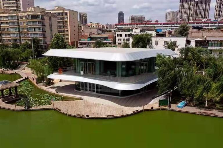 這座公園被譽為“鑲嵌在黃河邊上的綠寶石”,以水景作為核心景觀,在水與島、水與綠之間架設(shè)形式各異的木橋,形成全園的景觀骨架,并以保護(hù)生態(tài)為主要宗旨,使公園內(nèi)植物、水鳥以及黃河水域達(dá)到生態(tài)平衡。