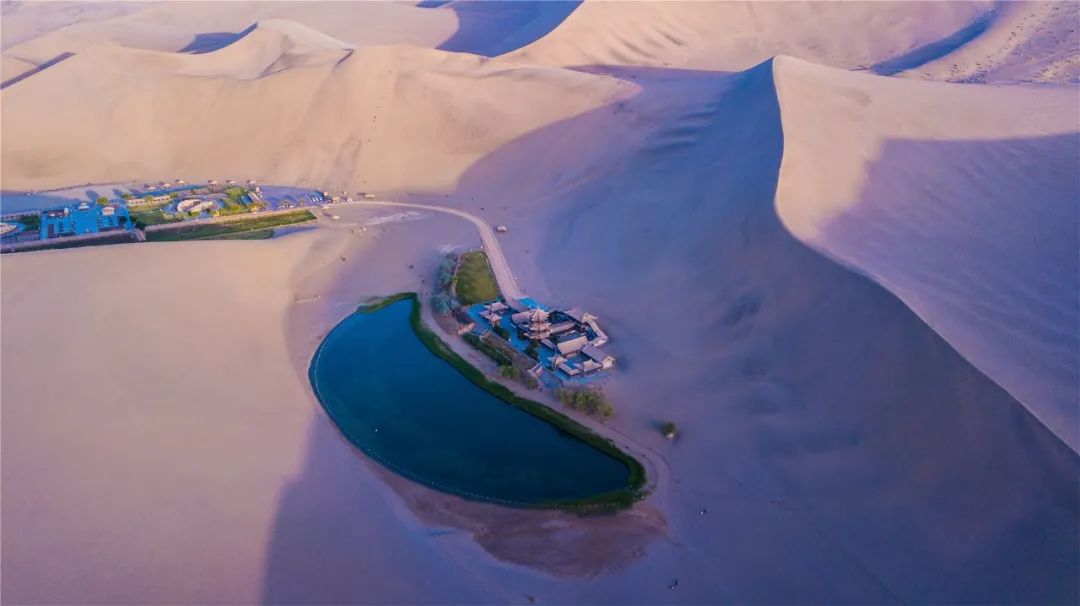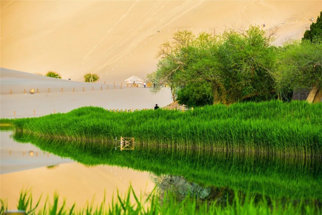 今年4月,敦煌市氣候溫潤(rùn),雨水較多,鳴沙山月牙泉景區(qū)草木蔥蘢,月牙泉水位持續(xù)上升。從4月23日在月牙泉航拍的圖片可以看出,月牙泉水域面積逐漸擴(kuò)大,泉水已滲出月牙泉圍欄之外近1米的距離。據(jù)悉,3年前月牙泉泉水一直保持在圍欄之內(nèi)。