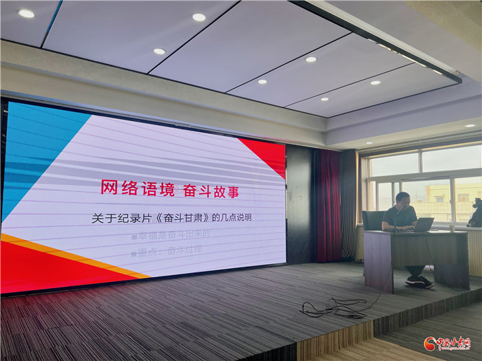 隨后,舉辦了《幸福中國——奮斗甘肅》大型網(wǎng)絡(luò)紀(jì)錄片導(dǎo)演培訓(xùn)會(huì),會(huì)議由蘭州電視臺(tái)紀(jì)錄片創(chuàng)作中心導(dǎo)演趙國鵬作為主講人,中國甘肅網(wǎng)總編輯張振宇主持。