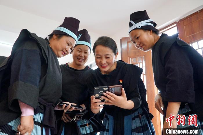 圖為白褲瑤居民正在通過手機(jī)了解信息。韋國政 攝