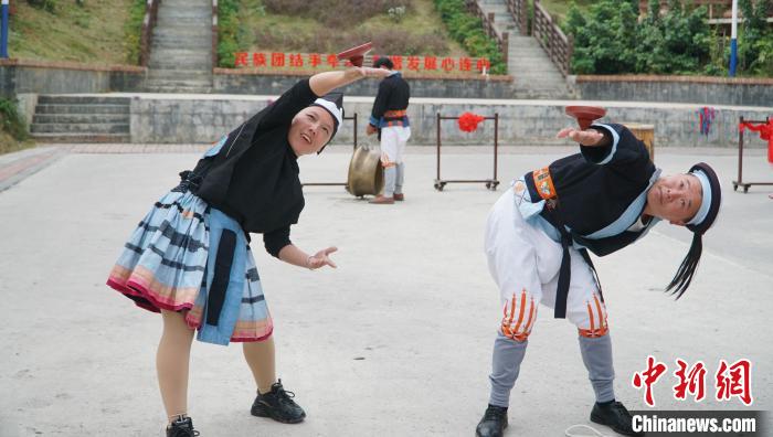 圖為白褲瑤居民正在進(jìn)行“猴棍舞”表演。韋國政 攝