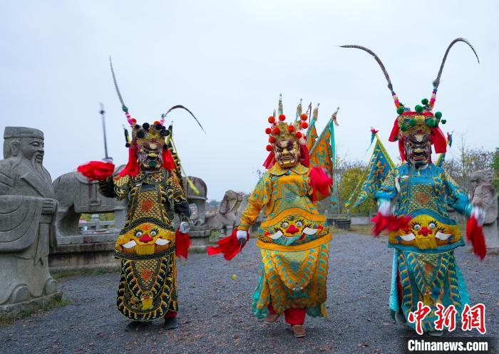 郎溪縣國(guó)家級(jí)非遺跳舞猖在郎溪縣濤城鎮(zhèn)慶豐村大佛山養(yǎng)心谷展演。 李曉紅 攝