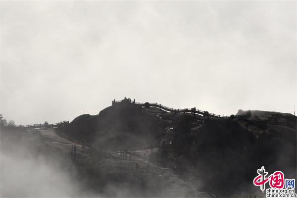 當(dāng)人們站在高山之巔俯首云海,如臨大海,波起峰涌,浪花飛濺,驚濤拍岸,神奇的佛光一波接著一波,美如仙境。(姚育青)