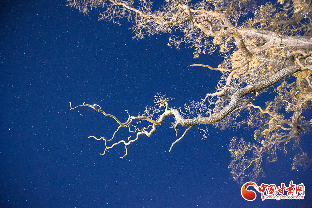 古槐樹夏季枝繁葉茂,身姿卓越;冬季樹葉凋落,顯露出它曠古的肌膚和清晰的骨骼,蒼遠(yuǎn)巨偉。天氣晴好的時候,可以拍到星空與古槐生命與時空的結(jié)合,感嘆生命的頑強與奇妙。