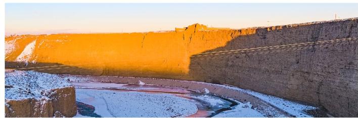 討賴河墩。嘉峪關南的討賴河盡頭之處,有一座高大的墩臺,原名討賴河墩,因是萬里長城西陲的第一座墩,又名“萬里長城第一墩”。該墩在嘉峪關之南,位于討賴河北岸高達82米的懸崖峭壁之上,距關城7.5千米。據(jù)《肅州志》記載:“討賴河墩,城(酒泉)西七十里,乃邊墻南,近討賴河盡頭之處。”該墩臺是肅州兵備道李涵于明嘉靖十八年(1539)至十九年(1540)監(jiān)筑。