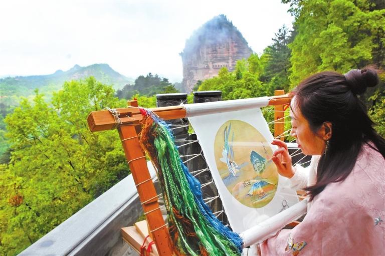 “應(yīng)用現(xiàn)代審美思維創(chuàng)作出麥積山石窟系列刺繡文創(chuàng)作品,麥積刺繡藝術(shù)品的觀賞價(jià)值和實(shí)用價(jià)值會進(jìn)一步凸顯。”曹苑春說。除此之外,畫繡、雙面繡團(tuán)扇、香包、刺繡宮燈、刺繡擺臺等作為裝飾生活的藝術(shù)品,已被很多人所喜愛,刺繡作品正以全新的面貌走入尋常百姓家。