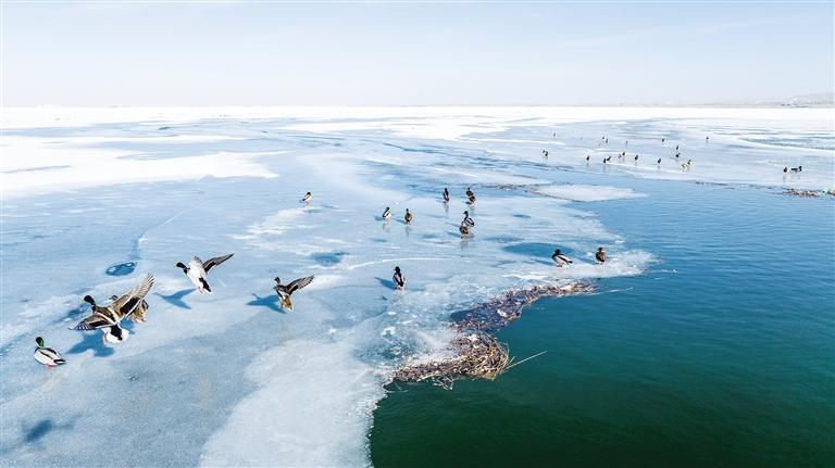 中國(guó)甘肅網(wǎng)2月3日訊 據(jù)蘭州晚報(bào)報(bào)道(通訊員 李永華 魏生明 記者 高慧霞 攝)2月2日,位于金塔縣的解放村水庫(kù),越冬候鳥綠頭鴨、赤麻鴨成群結(jié)隊(duì)。隨著金塔縣生態(tài)環(huán)境的持續(xù)改善和好轉(zhuǎn),近幾年過(guò)境候鳥數(shù)量持續(xù)升高,每年冬天都有綠頭鴨、赤麻鴨等鳥類遷徙到解放村水庫(kù)等濕地越冬。