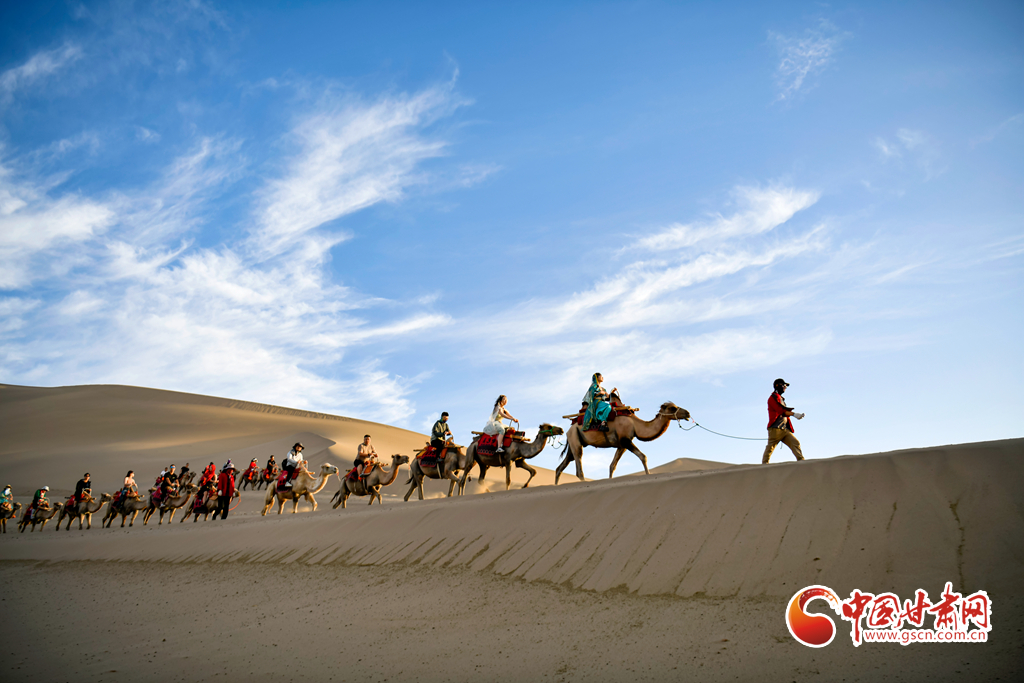 【隴拍客】敦煌駱駝排隊“上班” 千年絲路令游客“神往”
