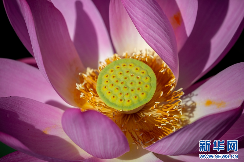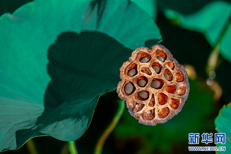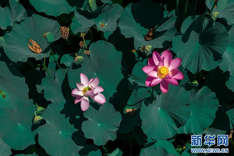近日,在甘肅省白銀市白銀區(qū)水川黃河濕地公園,滿(mǎn)池荷花嬌艷、荷葉青翠,藍(lán)天、碧水、嬌花、翠葉構(gòu)成了一幅秋日美景圖。新華網(wǎng)發(fā)(郭宏 攝)
