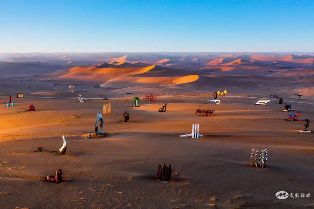 民勤蘇武沙漠景區(qū)絕對是網(wǎng)紅般的存在。刷屏各平臺它已成為???,沙漠雕塑國際創(chuàng)作營是大家最愛的拍照打卡地,132座不同材質(zhì)、不同風格的藝術(shù)佳作,如一顆顆璀璨明珠飄落瀚海,與藍天白云、金色大漠完美融合、相映成趣,超級出片。