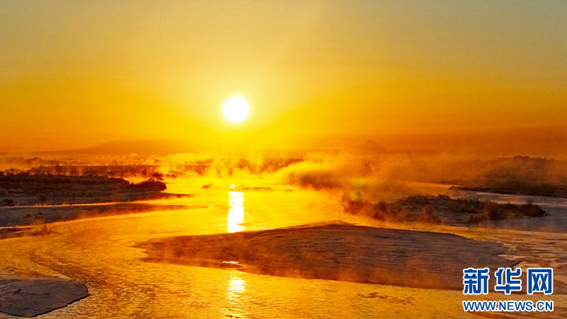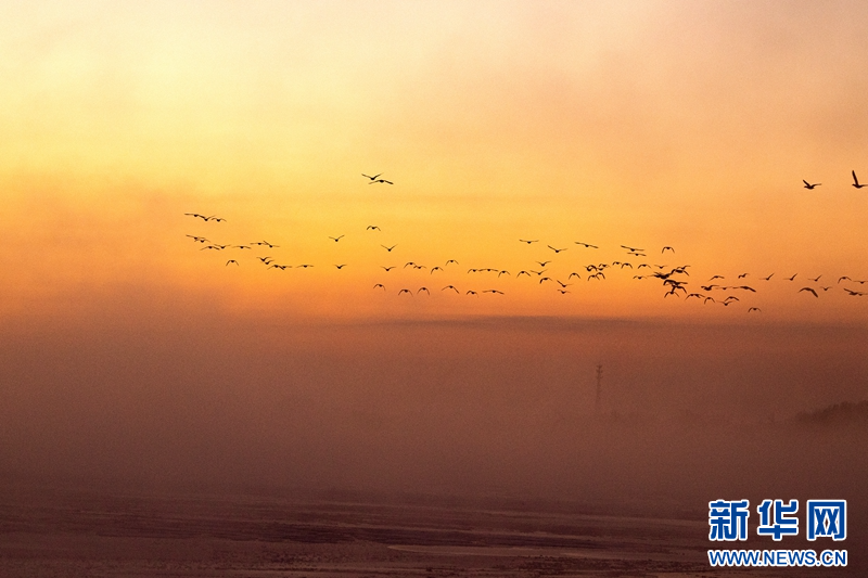 1月21日,冬日清晨,甘肅張掖黑河濕地日出如畫。一輪冉冉升起的紅日絢麗奪目,與河流、樹木、候鳥、晨霧共同構(gòu)成了一幅生態(tài)畫卷。新華網(wǎng)發(fā)(成林 攝)