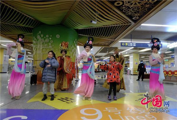 2020年底,西安地鐵9號(hào)線開(kāi)通之際,華清池站帝妃攜仕女表演的《霓裳羽衣舞》,秦王攜眾臣高呼“我們有地鐵了”的聲音依舊回旋耳邊。時(shí)值龍年新春佳節(jié),廣大乘客在乘坐安全舒適西安地鐵9號(hào)線的同時(shí),將再次有機(jī)會(huì)在地鐵車(chē)站和地鐵列車(chē)上來(lái)一場(chǎng)“秦唐”文化的穿越之旅。