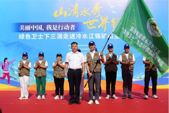 活動現(xiàn)場,與會領導還為冷水江綠色衛(wèi)士生態(tài)環(huán)境志愿服務隊進行了授旗。