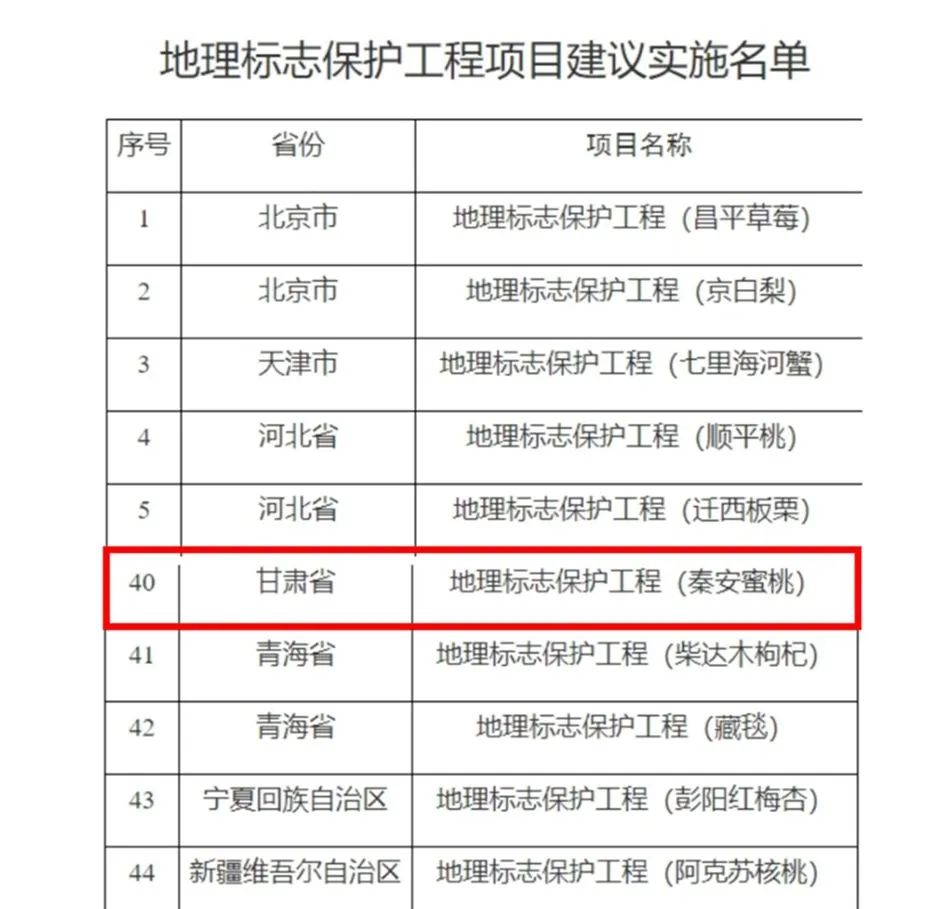 秦安蜜桃上榜2024年國(guó)家級(jí)地理標(biāo)志保護(hù)工程實(shí)施名單