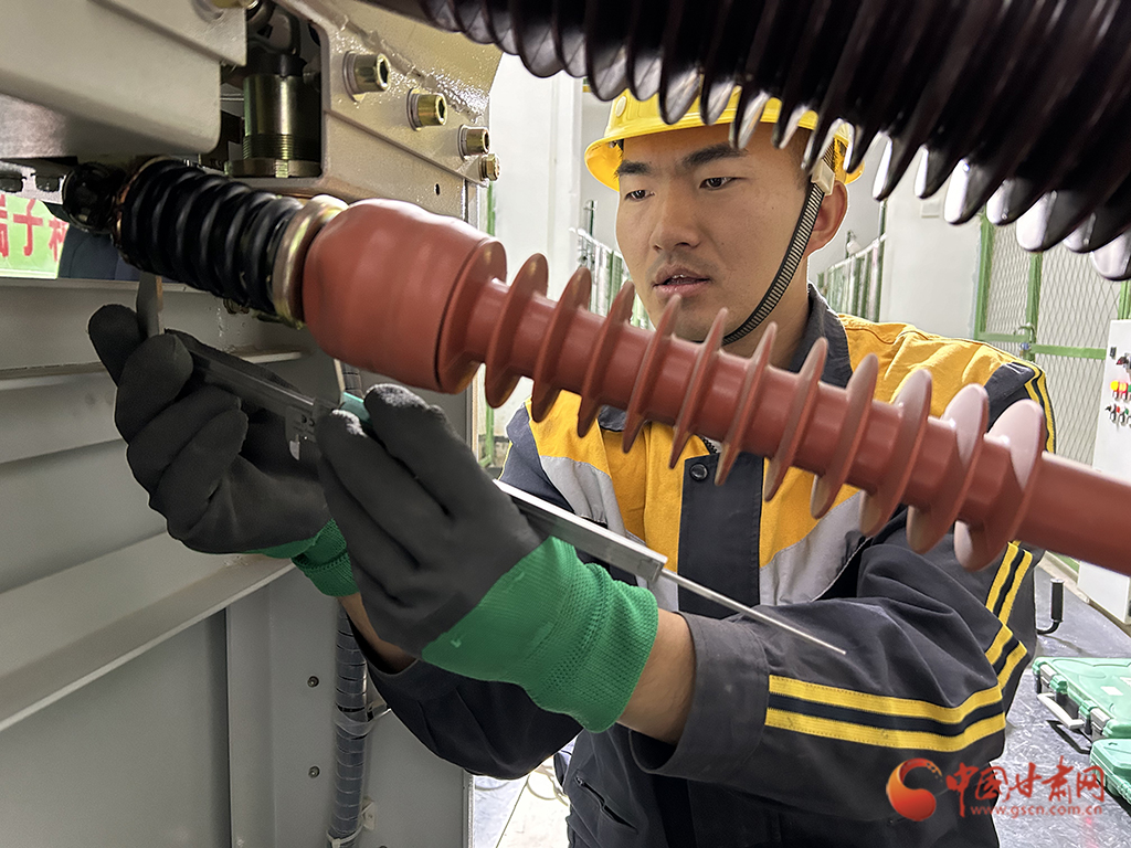 狼尾山變電所位于祁連山深處,擔負著鏡鐵山支線的供電任務(wù)。因鏡鐵山支線一路沿討賴河大峽谷蜿蜒前行,山高谷深、溝壑縱橫,70多公里的鐵道線列車用電量大,對變電所設(shè)備損耗大,需要及時進行檢查。變電所里,鐵路職工用汗水鑄就鐵路電力“安全線”。