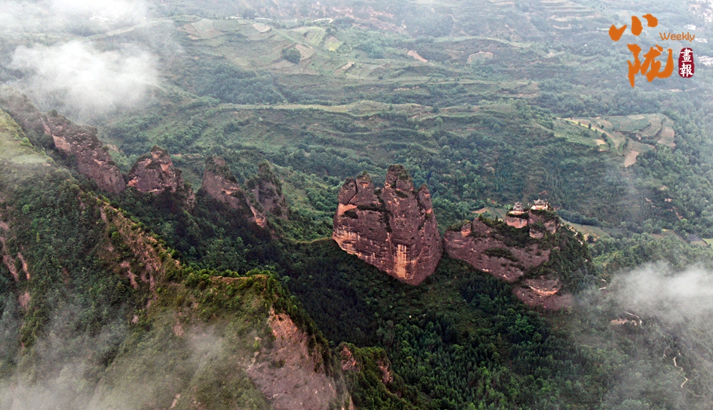 從空中俯瞰,牛頭山險壑錯綜,崖高十余丈,四面凌空,直立如削,呈現(xiàn)陽剛挺拔之勢。