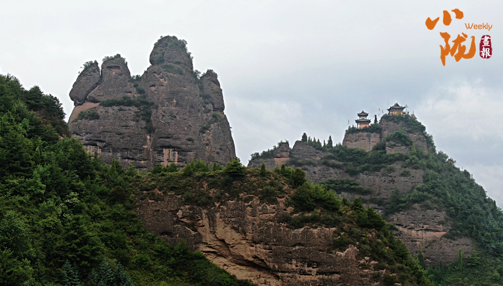 隴南宕昌縣牛頭寺公園,群山環(huán)抱,森林蔥郁,斷崖峭壁,數(shù)根巨大裸露石筍形狀各異、矗立其中,為公園增添了幾分神秘感。