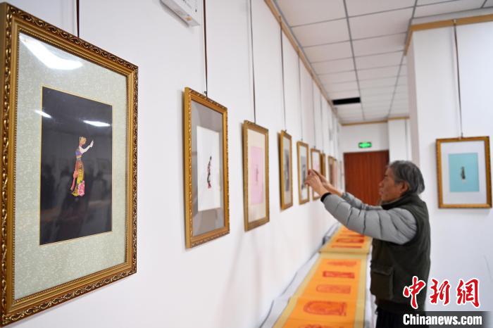 11月19日,“蘭州剪紙”非遺傳承人李自新、李麟桐剪紙藝術(shù)展在甘肅省蘭州市開(kāi)幕,展出以敦煌壁畫、隴上風(fēng)物等為題材,精心創(chuàng)作的剪紙作品。圖為展出的剪紙作品。中新社記者 九美旦增 攝