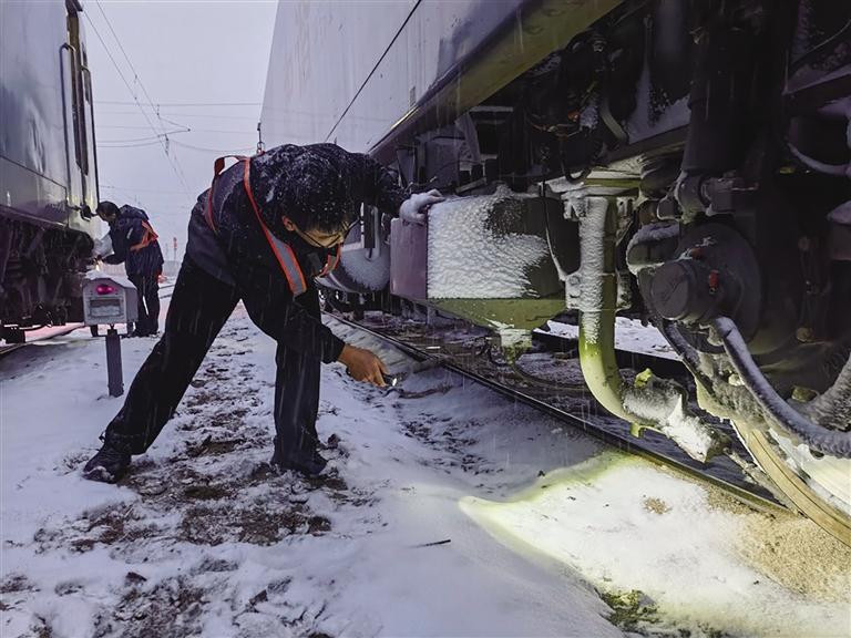 受今年入冬以來最強(qiáng)寒潮、雨雪天氣影響,11月23日20時開始,中國鐵路蘭州局集團(tuán)有限公司蘭州西機(jī)務(wù)段調(diào)車車間擔(dān)當(dāng)管內(nèi)的武威南、打柴溝等地區(qū)氣溫接近零下15℃,蘭新線蘭州北至武威南、蘭青線部分線路已普降中到大雪,調(diào)車車間干部職工以雪為令,精心組織、主動應(yīng)對,采取有力措施最大限度降低不良天氣給行車安全帶來的影響,全力保證疆煤外運(yùn)人員供應(yīng),確保列車安全暢通。