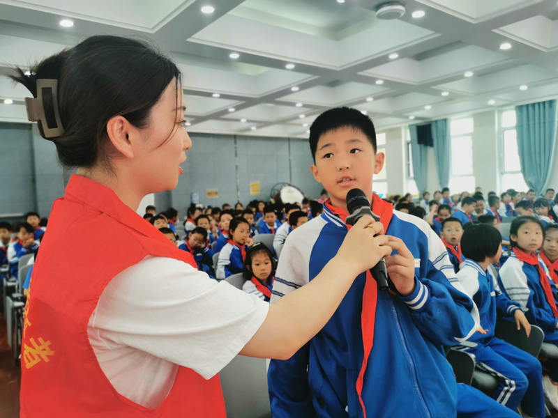 在“文明上網(wǎng)·快樂童行”主題活動中,小學生回答網(wǎng)絡文明志愿者的提問。蘭州文明網(wǎng)供圖