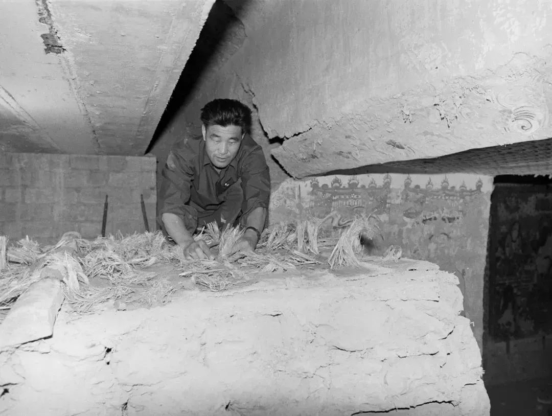 因?yàn)榻?jīng)費(fèi)緊張,我們于是自己想辦法,到洞窟前面的樹林里面去砍伐死樹,自己加工制作遷移壁畫的模型。采用單層壁畫揭取的鋸取法,把甬道口內(nèi)外連接前室和主室的表層壁畫分割揭取下來,用夾板固定揭取下來的壁畫層,防止壁畫變形、破裂。然后從甬道口內(nèi)外兩側(cè)由上而下,拆除和鋸割兩層壁畫之間的土坯、泥層。