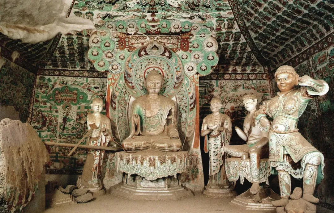 搬遷復(fù)原的洞窟內(nèi),不但保持了原來壁畫和塑像的原貌,洞窟內(nèi)的其他部位,如坍塌壁面也與洞窟原貌基本相同。從南湖店搬來的新建洞窟是磚混結(jié)構(gòu)的洞窟,我們對洞窟外墻面用礫石進(jìn)行裝飾,這樣洞窟與周邊崖壁、洞窟相一致。這兩個(gè)洞窟被安置在莫高窟北區(qū)大沖溝中,既不破壞和影響原有洞窟,又使其與周邊崖面和洞窟融為一體。如果不被提醒,人們?nèi)菀渍`認(rèn)為它們就是古代所建造的洞窟。
