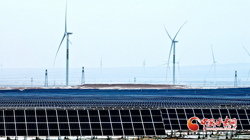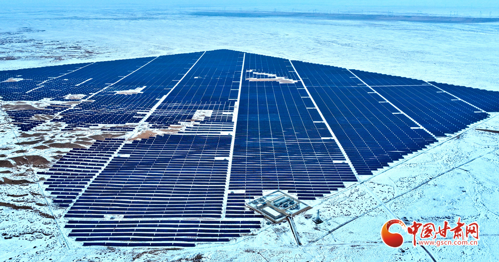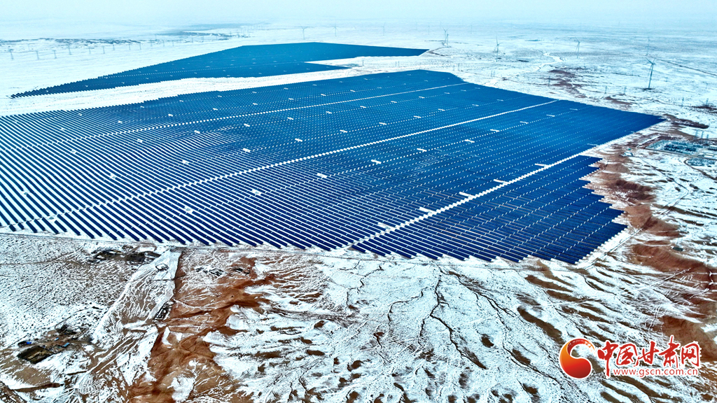 12月18日, 一場(chǎng)大雪過(guò)后,大漠深處的張掖市臨澤縣北部灘新能源產(chǎn)業(yè)園內(nèi),81.1萬(wàn)千瓦光伏治沙光伏集陣和85萬(wàn)千瓦風(fēng)力發(fā)電機(jī)組群,在防沙治沙的同時(shí)將光熱和風(fēng)力轉(zhuǎn)換為電能輸入國(guó)家電網(wǎng),推進(jìn)了“西電東送”輸電工程建設(shè)。