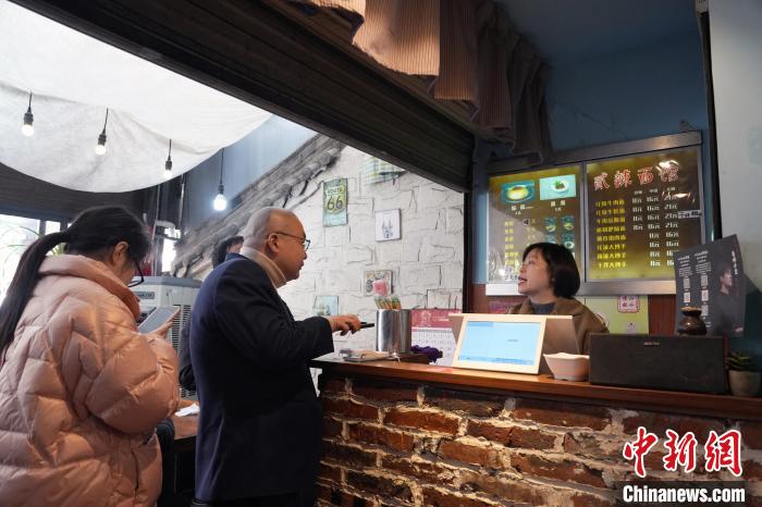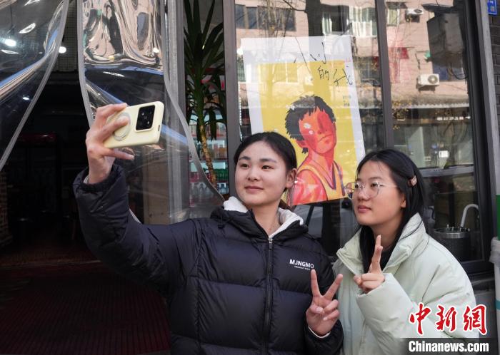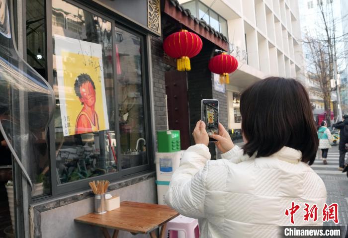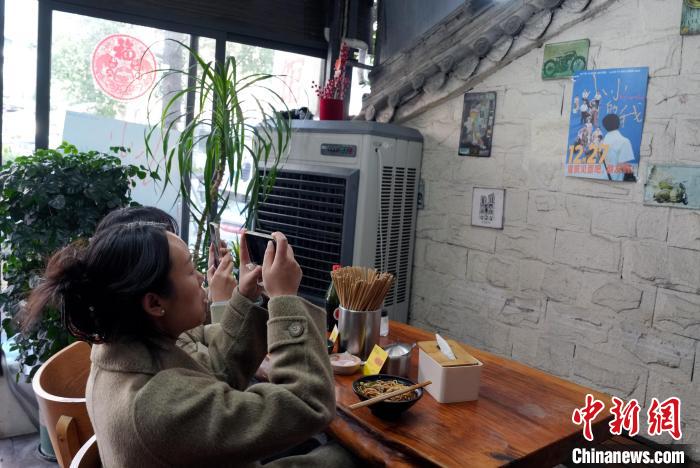 12月31日,四川成都,影迷在面館拍照留念。中新社記者 安源 攝