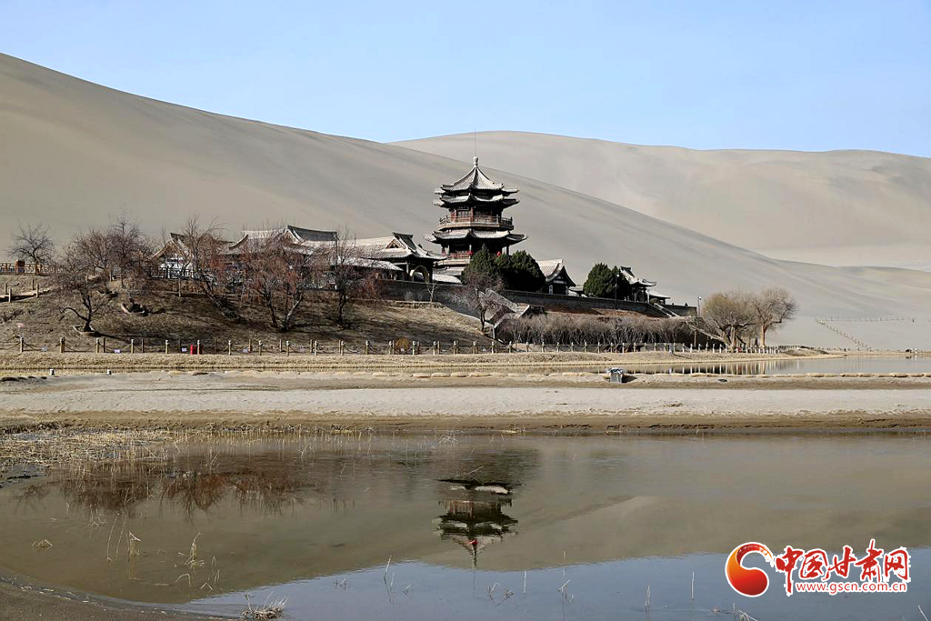 3月8日,隨著氣溫回暖,絲路明珠敦煌迎來早春勝景。鳴沙山環(huán)抱中的月牙泉冰雪消融,一泓碧水宛如翡翠鑲嵌在大漠之中,呈現(xiàn)出"沙水共生"的奇觀。