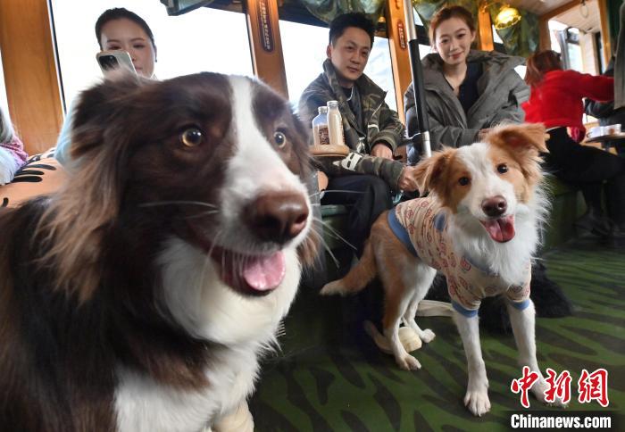 3月16日,吉林長(zhǎng)春,寵物和主人在車(chē)廂內(nèi)看風(fēng)景。近日,長(zhǎng)春54路文旅東北虎專(zhuān)列專(zhuān)為寵物主人們推出攜帶寵物乘車(chē)的專(zhuān)屬服務(wù),寵物主人可在特定時(shí)間帶領(lǐng)寵物乘車(chē)。車(chē)廂內(nèi),萌寵們或坐或臥,與主人親密互動(dòng),仿佛在進(jìn)行一場(chǎng)別開(kāi)生面的派對(duì)。中新社記者 張瑤 攝