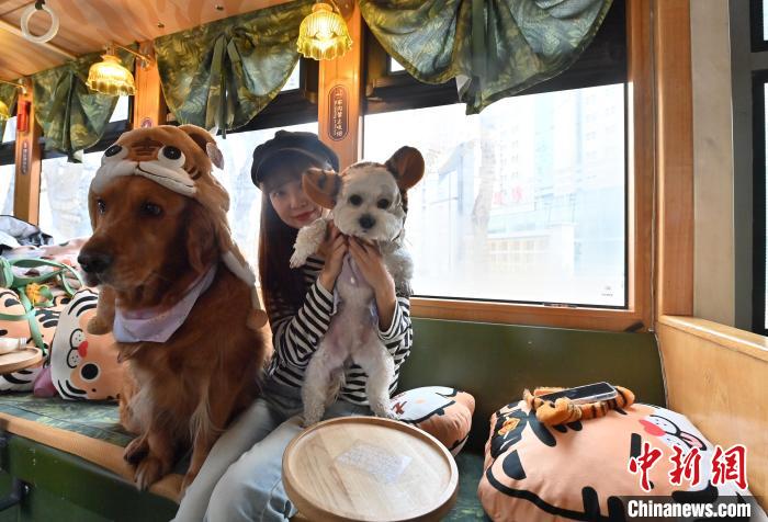 3月16日,吉林長(zhǎng)春,寵物和主人在車(chē)廂拍照留念。中新社記者 張瑤 攝