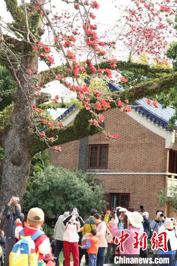 眼下,一株被譽(yù)為“中國(guó)最美木棉”的超350歲木棉樹(shù)以及周邊幾株木棉樹(shù)進(jìn)入盛花期,璀璨的紅棉在中山紀(jì)念堂藍(lán)瓦朱檐的映襯下,共同構(gòu)成了一道美麗的風(fēng)景線,吸引眾多市民和游客駐足“打卡”。不少攝影愛(ài)好者還架起專業(yè)設(shè)備捕捉盛景,定格與木棉花的春日邂逅。