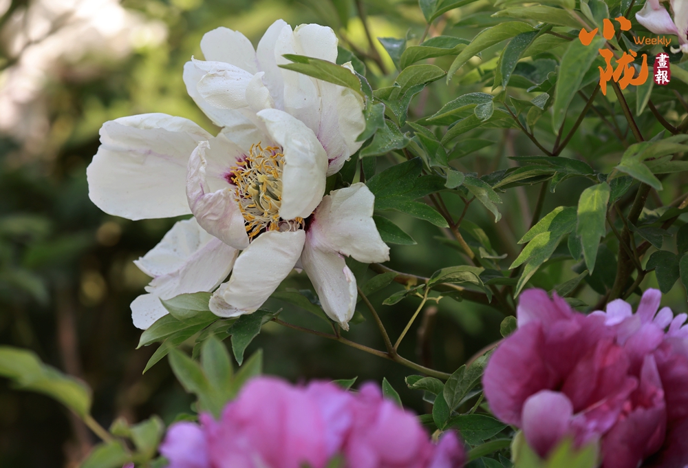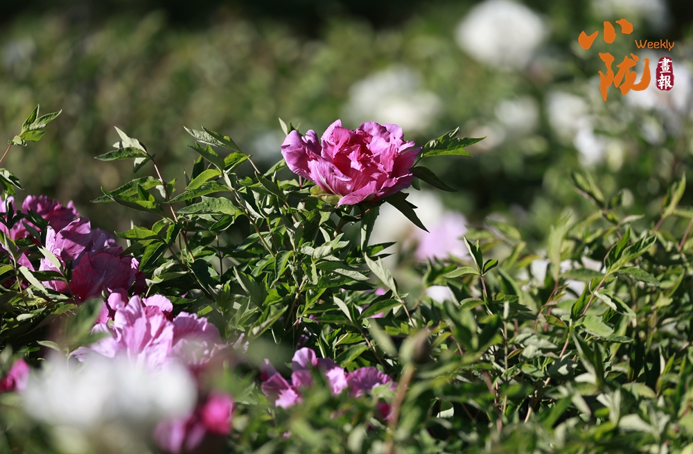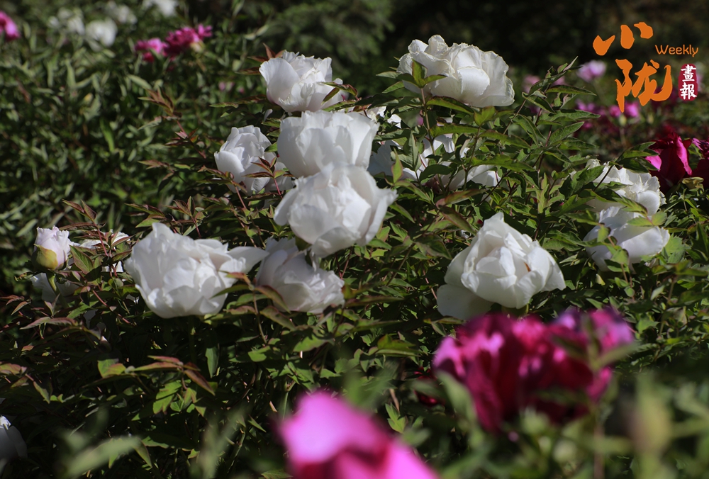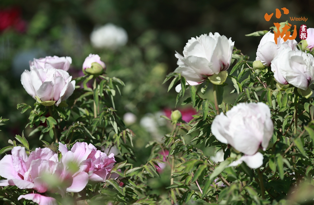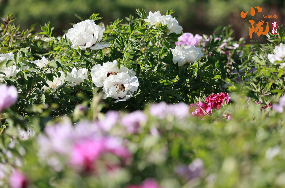 陽光照射下,牡丹粉的如霞,嬌艷柔美;白的像雪,純凈典雅,還有紫、黃等多種色彩相互交織,花朵碩大且花瓣層層疊疊,在微風(fēng)中輕輕搖曳,散發(fā)出陣陣淡雅的清香,讓人陶醉其中。