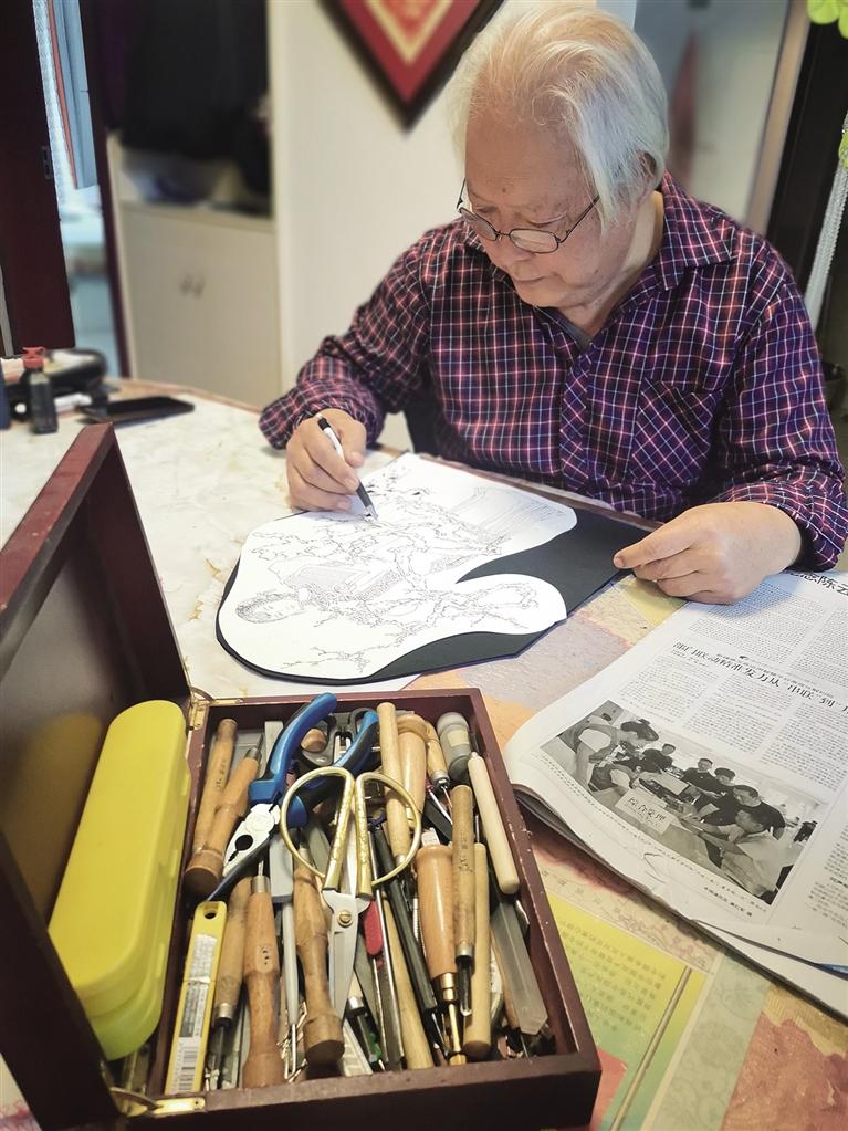 談到創(chuàng)作過程,他眼神中閃爍著匠人的嚴(yán)謹(jǐn)光芒:“剪一個(gè)好作品,首先要有一個(gè)構(gòu)思,然后再把它畫出來,再去動剪刀、刻刀各種工具。” 在他這里,剪紙絕非簡單的“剪花樣”,而是嚴(yán)謹(jǐn)?shù)乃囆g(shù)創(chuàng)作,是“胸有成竹”后的“運(yùn)剪如風(fēng)”。