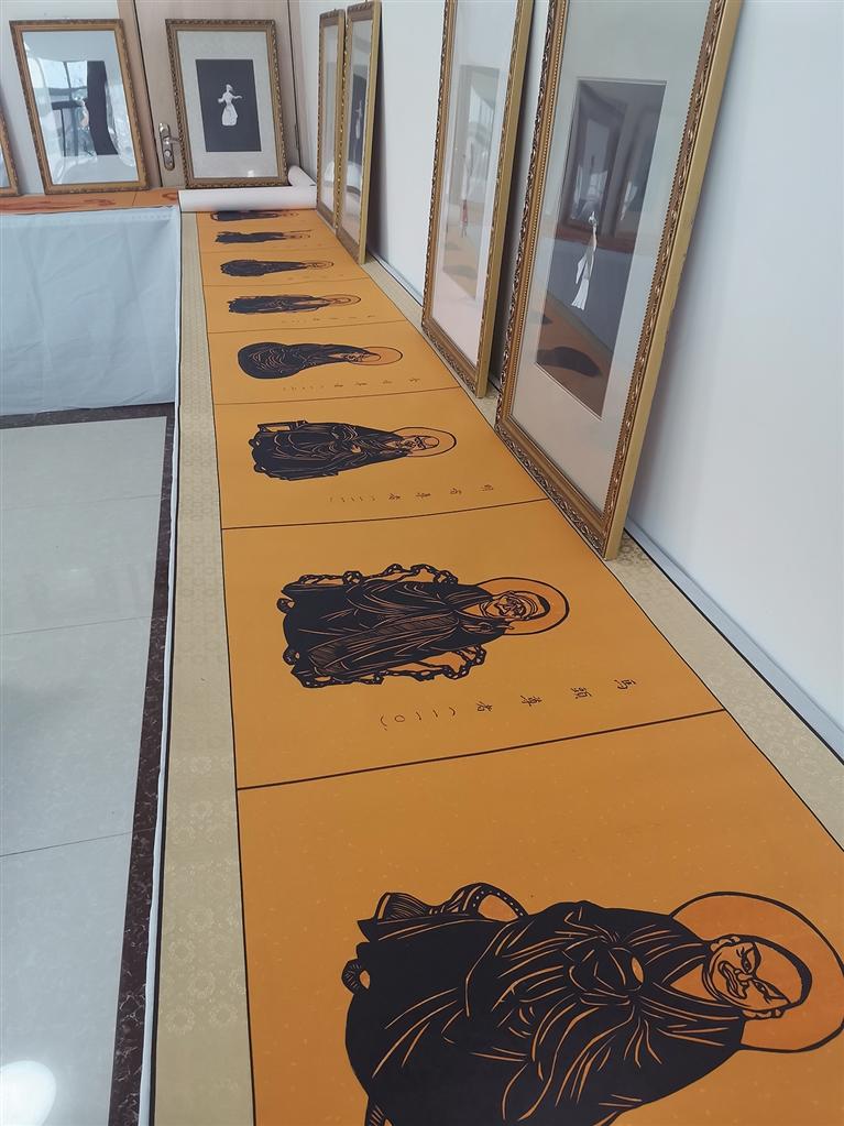 “我是從1989年開始學(xué)習(xí)剪紙創(chuàng)作的,”李自新回憶道,“最開始選的類型就是花鳥,因?yàn)橄鄬唵?,是基礎(chǔ)。”然而,他很快就不滿足于此,將目光投向了更為宏大、復(fù)雜的題材。“后面開始剪羅漢、敦煌壁畫。那時(shí)候,心里就憋著一股勁兒,想要挑戰(zhàn)最難的傳統(tǒng)藝術(shù)精華。”