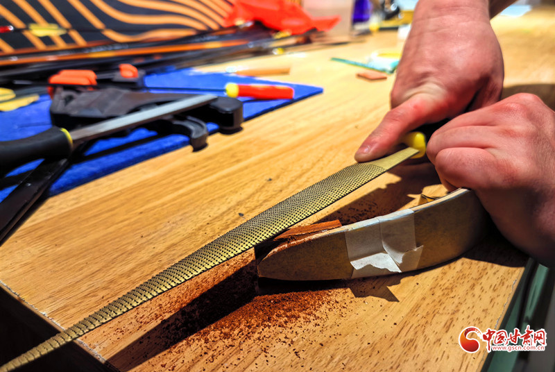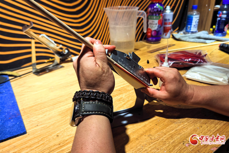 2011年,還是大學(xué)生的謝建戈在百度貼吧結(jié)識了山東臨沂“高氏傳統(tǒng)弓箭”非遺傳承人高超。囊中羞澀的他提出“先貨后款”,高超被這份赤誠打動,寄來第一套玻片弓料。一個月后,生活費一到賬,他第一時間把錢打了過去——網(wǎng)絡(luò)那端的高超從此記住了這個甘肅小伙。2012年,他做出人生第一把玻片弓。