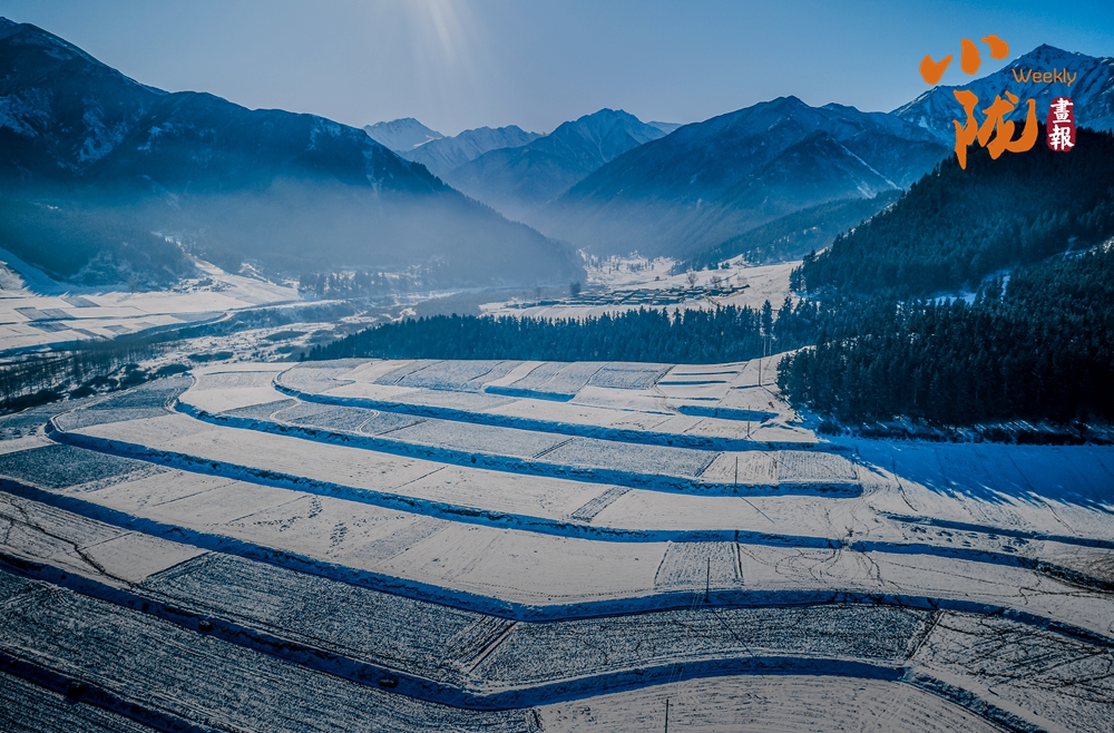 融雪斑駁似玉,在陽(yáng)光的映照下熠熠生輝。輕柔鋪展的白雪將起伏的山巒、靜默的松林和山鄉(xiāng)小居悉數(shù)包裹,盡展初冬的浪漫與詩(shī)情畫(huà)意。