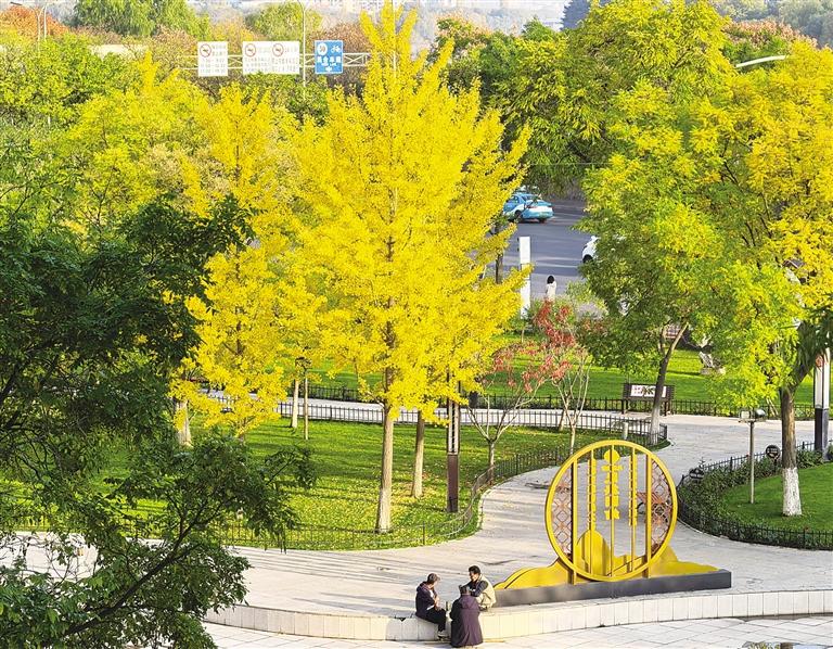 初秋時(shí)分,市民在銀杏樹(shù)下拍照打卡
