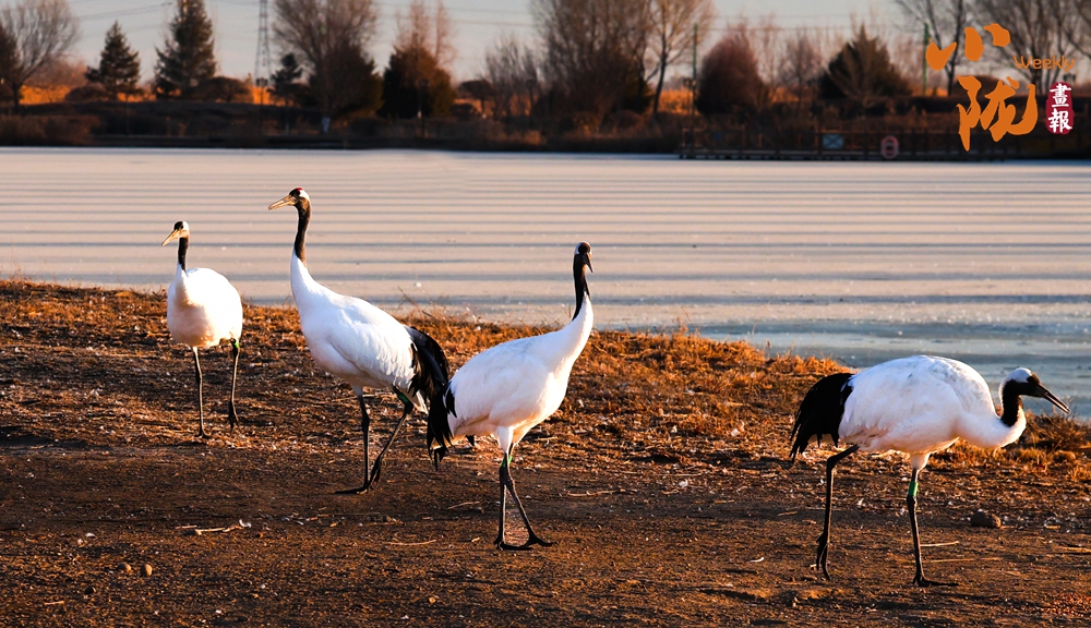 冰面映照著澄澈藍(lán)天,丹頂鶴展翅掠水,引頸高歌,清脆的鳴叫聲仿佛是大自然奏響的美妙樂章。
