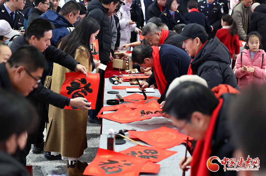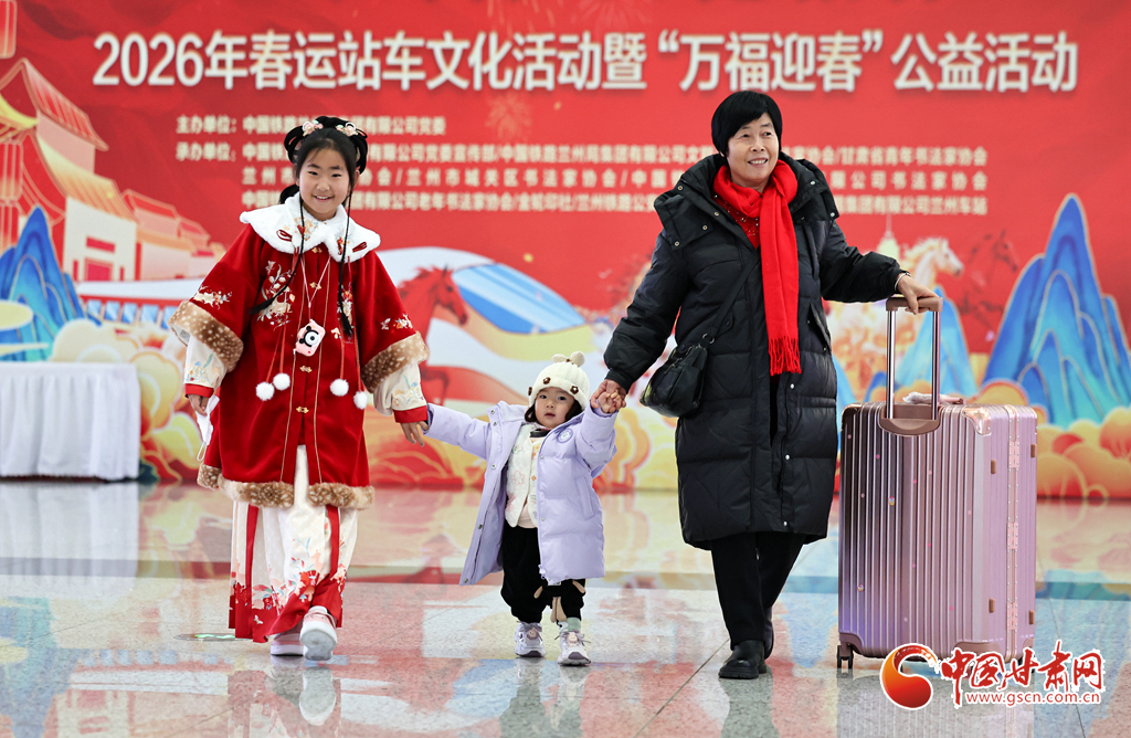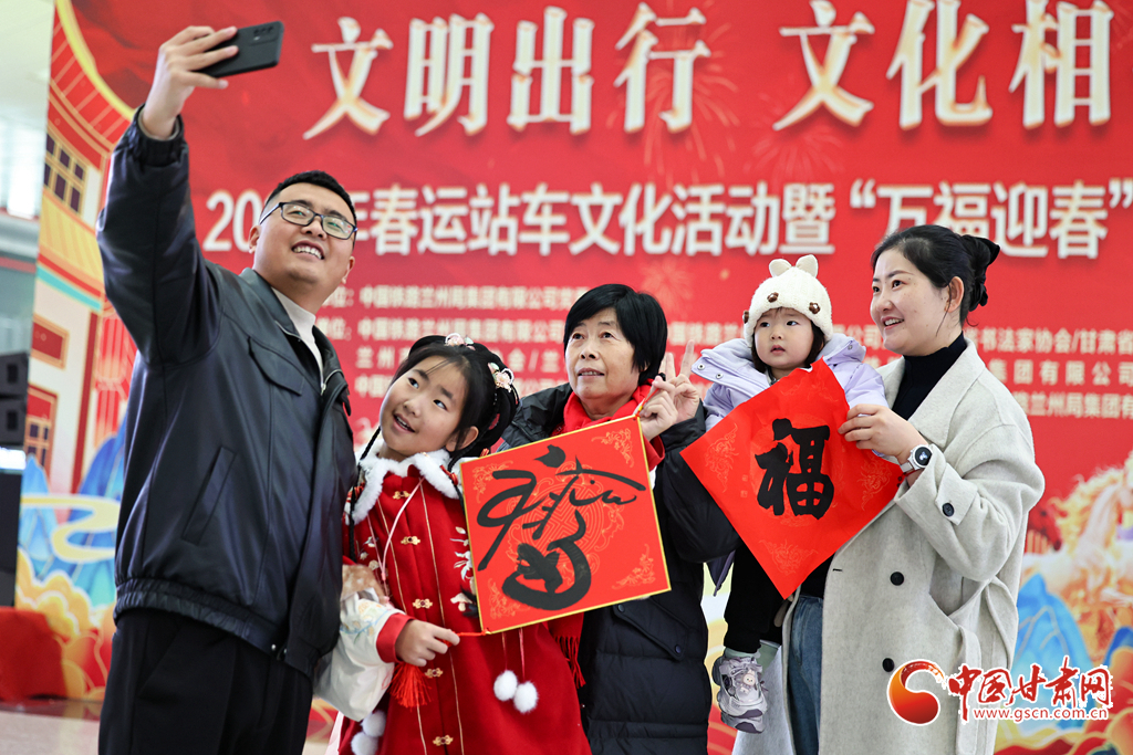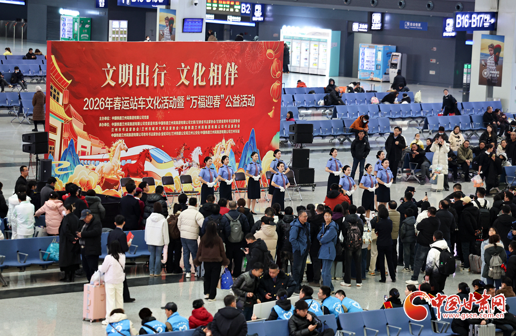 2月2日,2026年鐵路春運大幕正式拉開。中國鐵路蘭州局集團有限公司在蘭州西站候車廳開展“文明出行 文化相伴”特色暖心活動,邀請書法愛好者揮毫寫春聯(lián)、贈“福”字,同時奉上精彩文藝表演,為旅客的回家路增添濃濃年味與溫情。