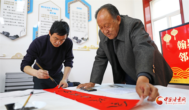 眼下,民樂(lè)縣南街社區(qū)開(kāi)展“迎新春、寫(xiě)春聯(lián)、送祝福”活動(dòng),書(shū)法愛(ài)好者們免費(fèi)為群眾書(shū)寫(xiě)春聯(lián),迎春納福,用筆墨傳遞溫暖與祝福。