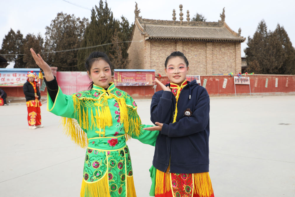 王欣怡、王欣語(yǔ)姐妹倆自小學(xué)習(xí)舞蹈,看著社火長(zhǎng)大的她們已連續(xù)兩年參加當(dāng)?shù)厣缁鸨硌荨?ldquo;社火表演熱鬧有趣,就像一種角色扮演,讓我們對(duì)傳統(tǒng)文化有了直觀的感受。”王欣怡說(shuō)。